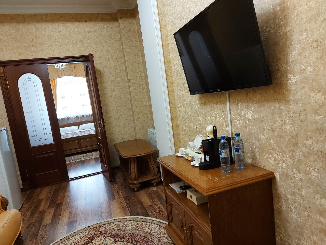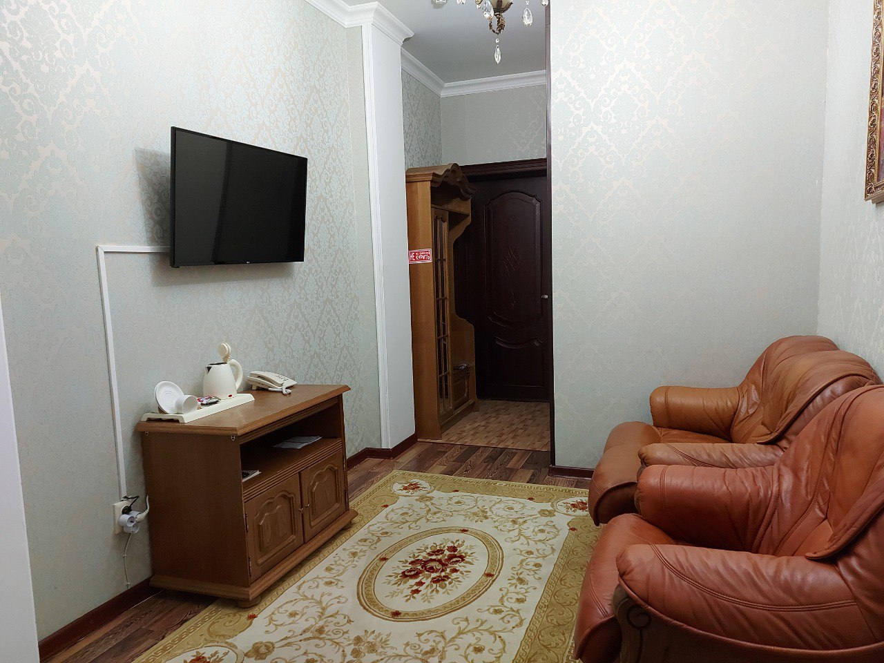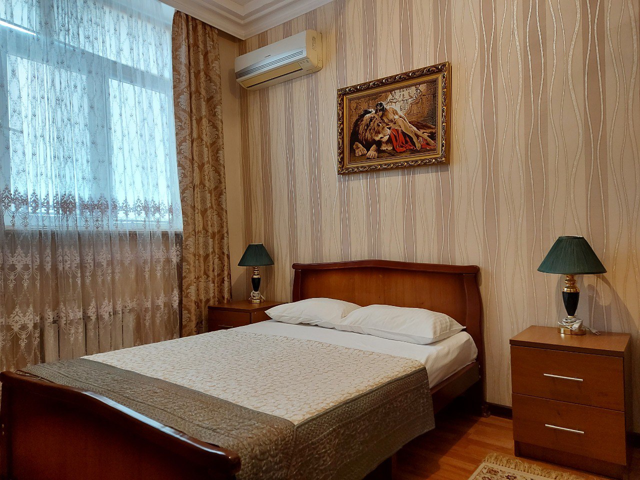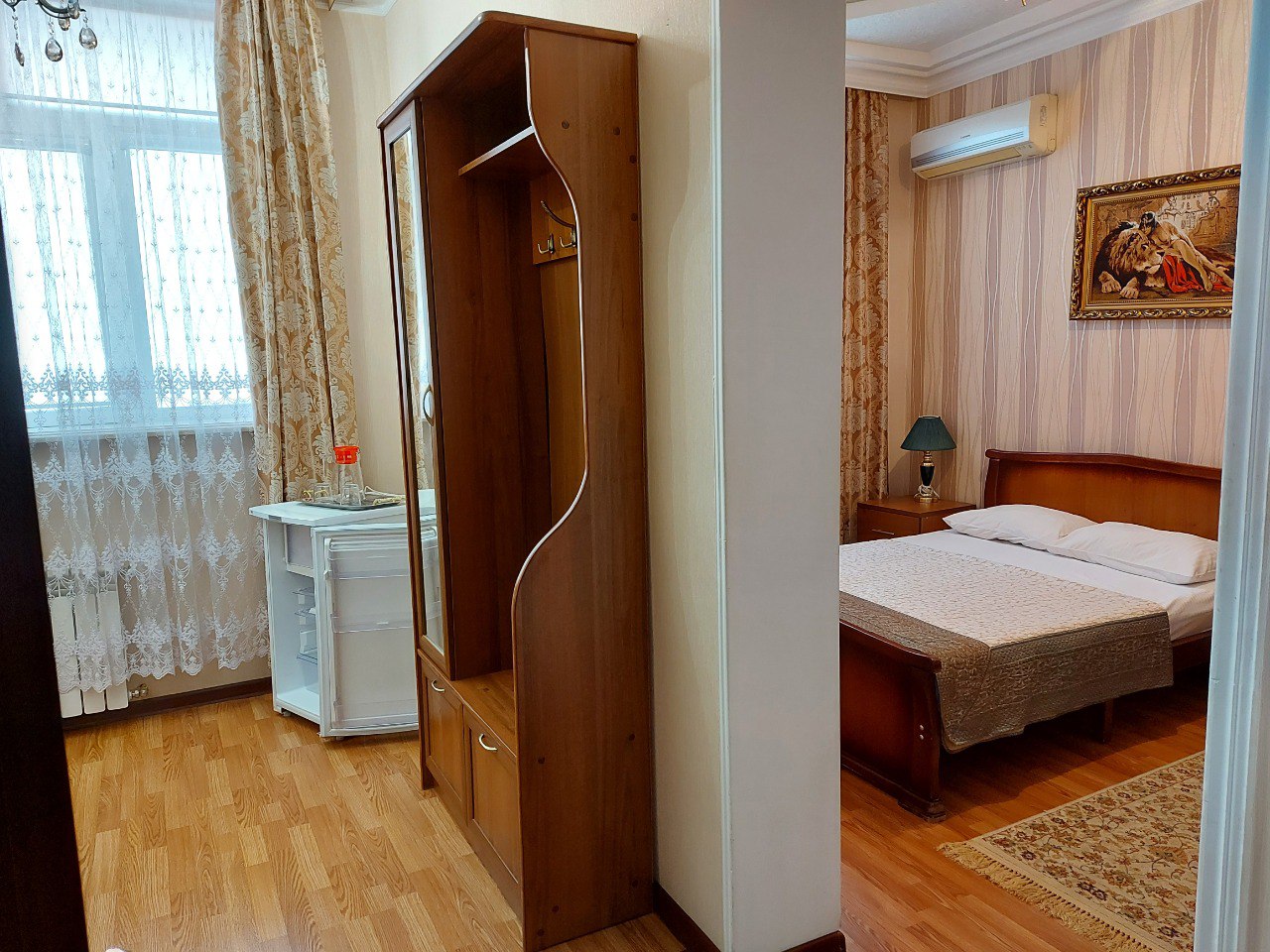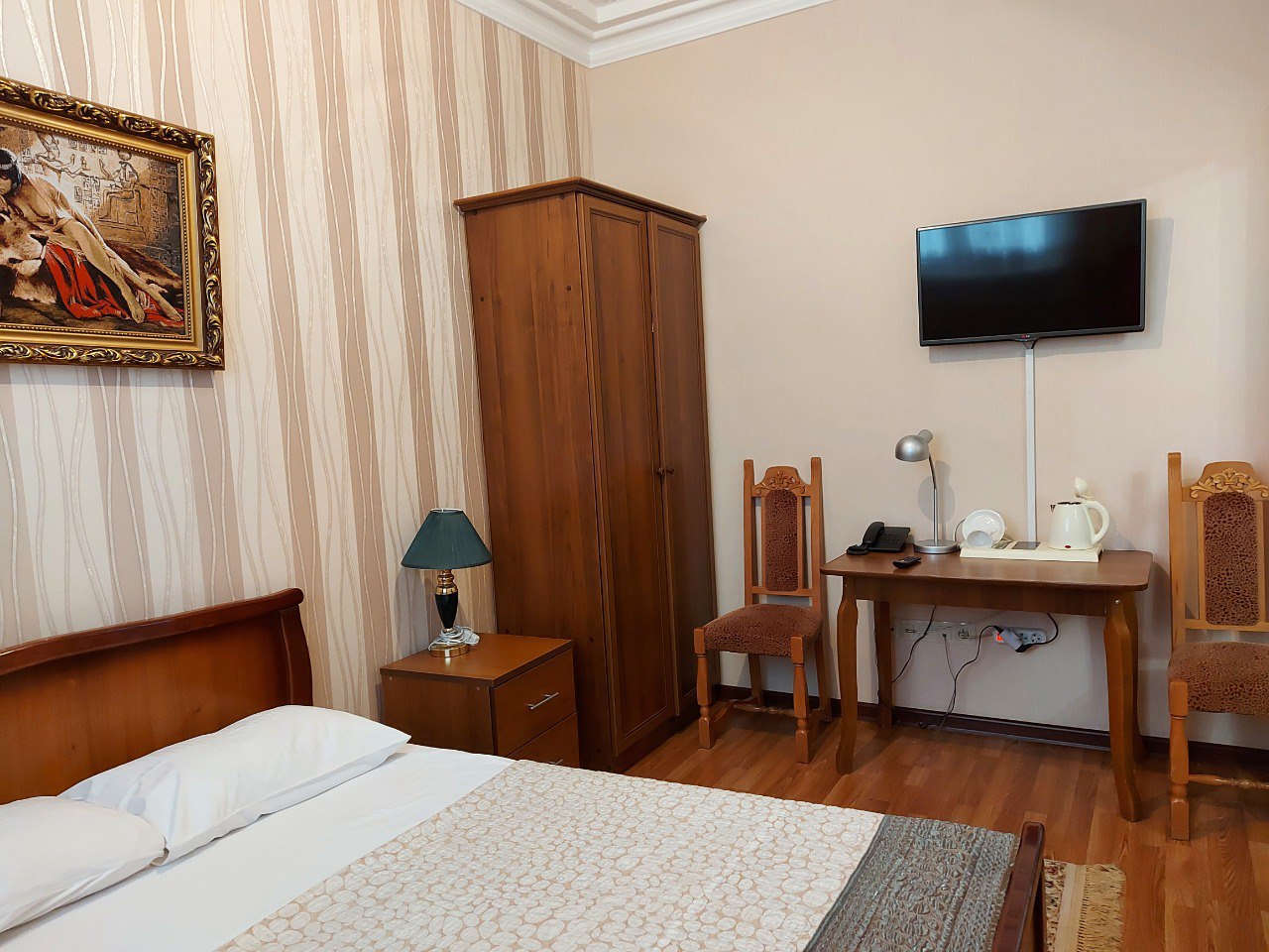В гостинице “Тархо” вы можете забронировать двухместный номер с одной кроватью. В номере созданы все необходимые для комфортного проживания условия – есть ЖК-телевизор, холодильник и кондиционер. В ванной комнате имеются: ванна и душевая, а также средства и аксессуары первой гигиены.